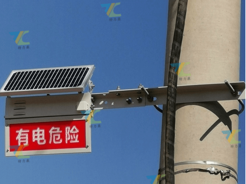 電力設施的安全運行對于保障人們的生產和生活至關重要。然而,由于各種原因,電力設施的觸電安全隱患和風險時常存在,給人們的生命財產安全帶來嚴重威脅。為了解決這一問題,特力康科技推出了一款防外力破壞智能語音警示牌(產品型號:TLKS-PLSA-Ⅲ),為線路安全保駕護航。